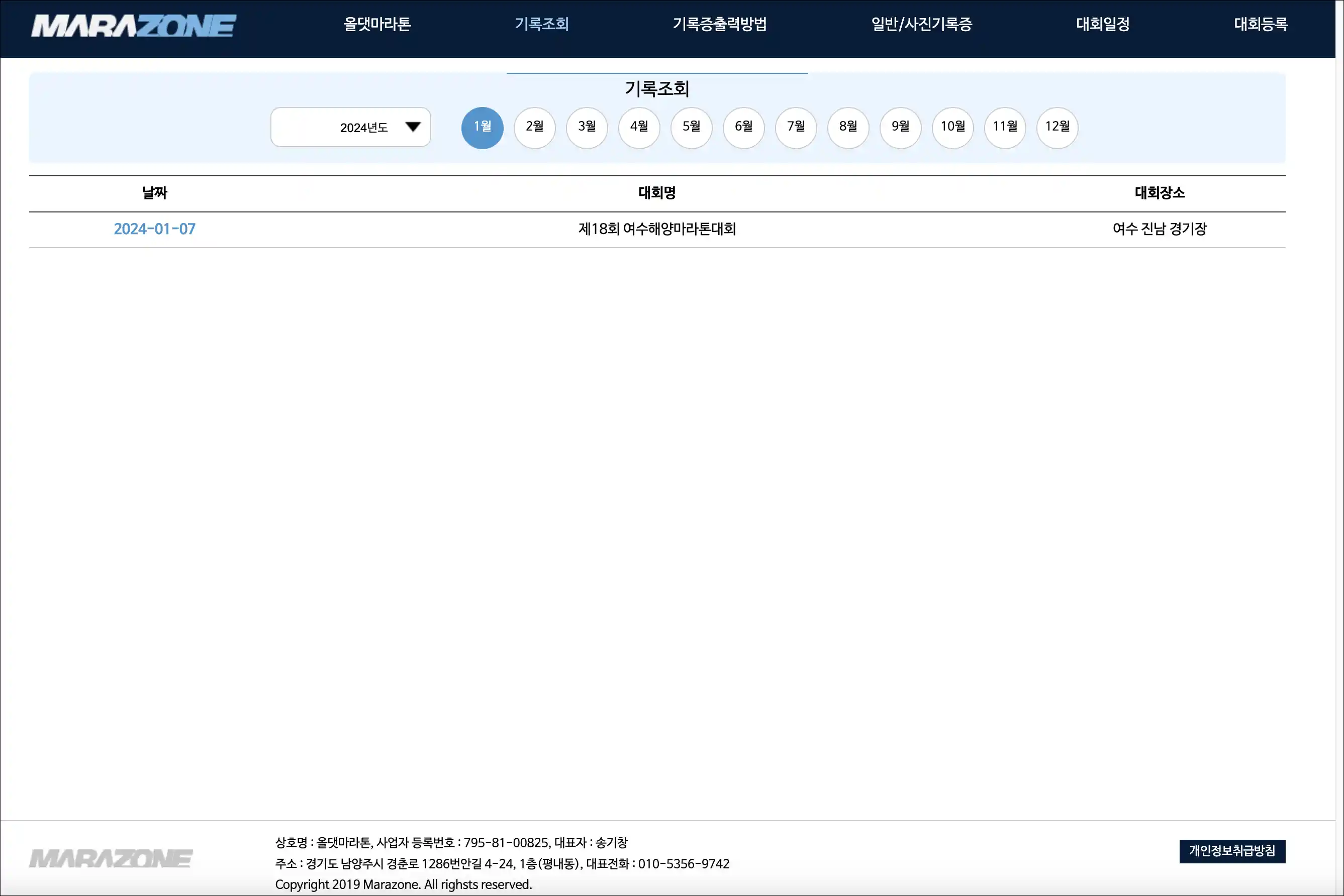 marazone (www.marazone.co.kr/marathon2) 2024년 01월 08일 작성자: violetot marazone상호명 : 올댓마라톤, 사업자 등록번호 : 795-81-00825, 대표자 : 송기창 주소 : 경기도 남양주시 경춘로 1286번안길 4-24, 1층(평내동), 대표전화 : 010-5356-9742 Copyright 2019 Marazone. All righsts reserved.