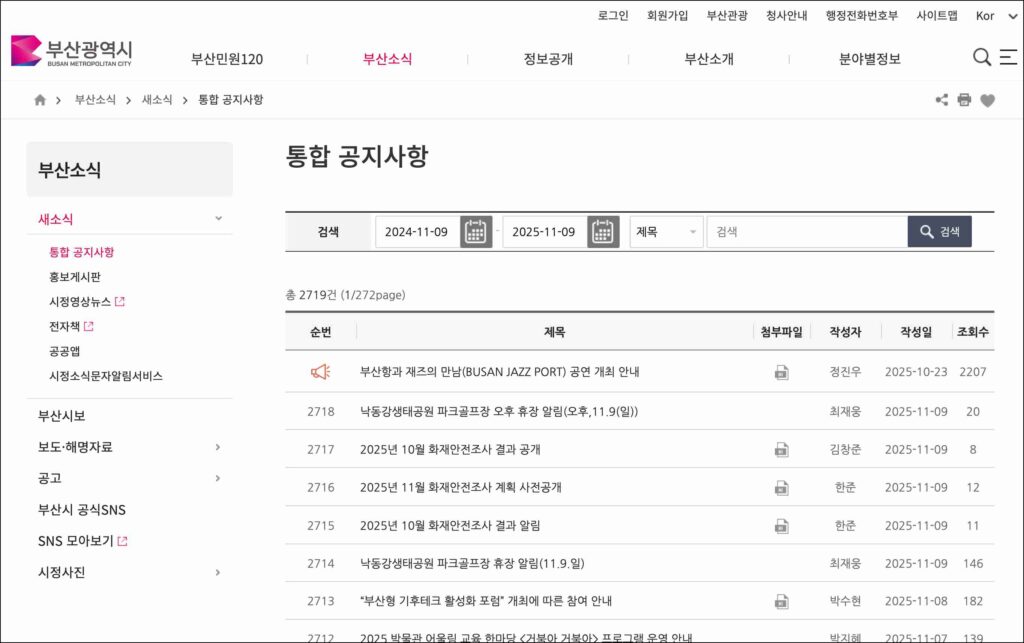 부산광역시의 ‘부산소식’은 시민에게 시정, 행정서비스, 생활정보, 공지사항 등을 전달하는 공식 온라인 플랫폼입니다.