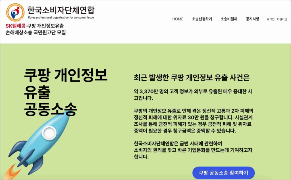 한국소비자단체연합 개인정보유출공동소송은 개인정보 유출로 피해를 입은 소비자들이 함께 대응할 수 있도록 마련된 참여형 공간입니다. 혼자서는 막막하게 느껴질 수 있는 법적 절차를 여러 피해자가 함께 진행할 수 있게 연결해 주는 역할을 합니다. 개인의 문제로 흩어지기 쉬운 피해를 하나의 흐름으로 묶는 데 의미가 있습니다.