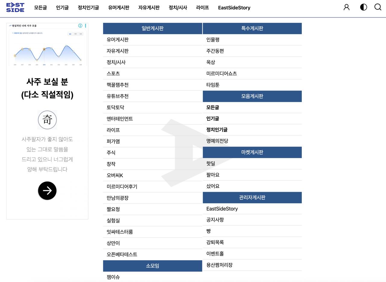 잇싸라는 이름이 좀 독특하죠. 영어로는 EastSideStory, 동편이라는 뜻인데요. 커뮤니티 사이트치고는 네이밍 센스가 꽤 괜찮다는 생각이 들었어요.