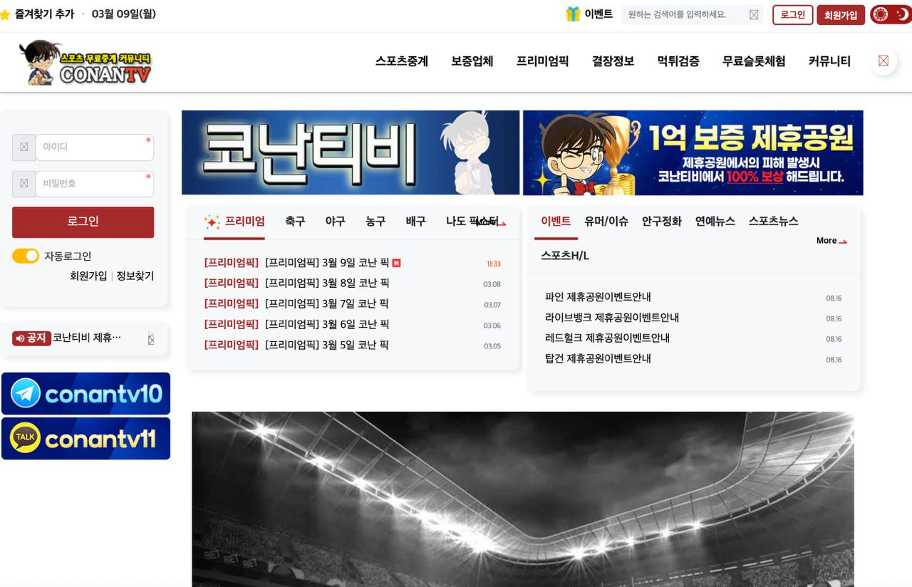 conan-tv.com은 코난티비라는 이름으로 운영되는 스포츠 중계 및 분석 콘텐츠 사이트입니다. 축구, 야구, 농구, 배구 등 다양한 종목의 경기 일정과 실시간 중계 정보를 제공하고 있어요.