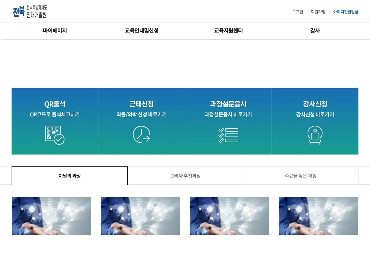 공무원 교육은 직급이나 직렬에 따라 이수해야 하는 과정들이 있는데, 이런 의무 교육을 온라인으로 편리하게 받을 수 있도록 만들어진 플랫폼입니다. 개인정보 보호와 세션 관리 기능도 포함되어 있어 보안 측면도 신경 쓴 모습입니다.