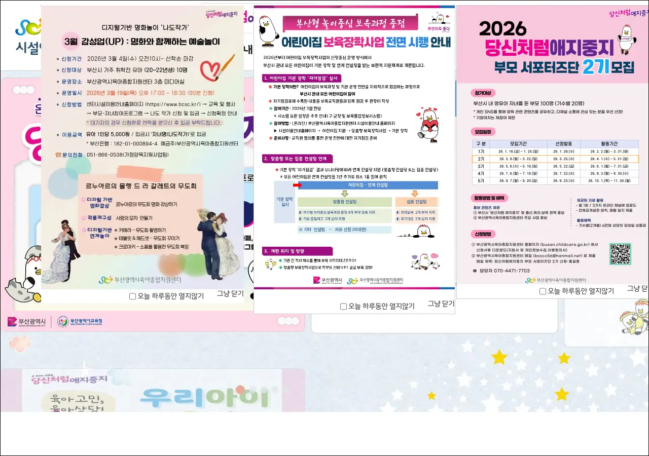 부산에서 아이를 키우고 계신 분들이라면 한번 방문해보시면 생각보다 도움 되는 서비스가 많을 거예요.