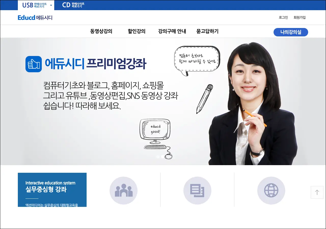 컴퓨터를 잘 모르시는 분들이나 인터넷 활용을 배우고 싶은 분들한테 괜찮은 교육 사이트예요. 에듀시디라는 이름의 온라인 동영상 강좌 플랫폼인데, 액션미디어라는 회사에서 운영하고 있습니다.