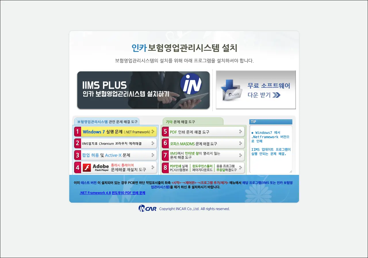 보험 영업을 하시는 분들이 사용하는 업무 시스템이 있는데요, air.incar.co.kr은 INCAR에서 운영하는 보험 영업 관리 시스템(IIMS) 설치 및 지원 페이지예요.
