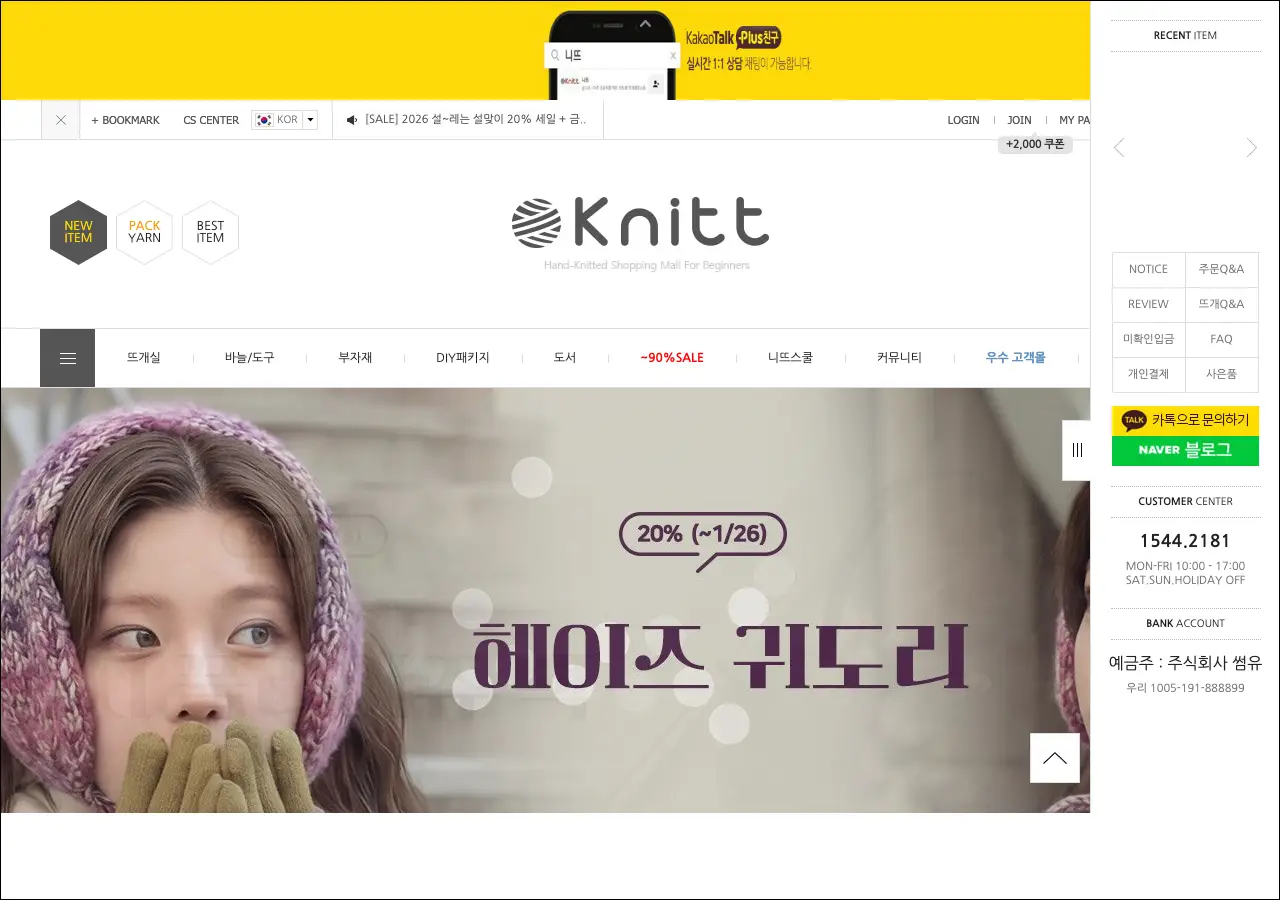 니트(Knitt)는 뜨개질 용품을 전문적으로 다루는 온라인 쇼핑몰이에요. 다양한 재질과 두께의 뜨개실부터 바늘, DIY 키트, 액세서리까지 뜨개질에 필요한 거의 모든 것을 갖추고 있습니다. 초보자를 위한 키트 상품도 있어서 처음 뜨개질을 시작하시는 분도 접근하기 쉬운 편이에요. 유튜브 채널과 네이버 카페도 운영하고 있어서 뜨개질 커뮤니티로서의 역할도 하고 있는 사이트입니다.