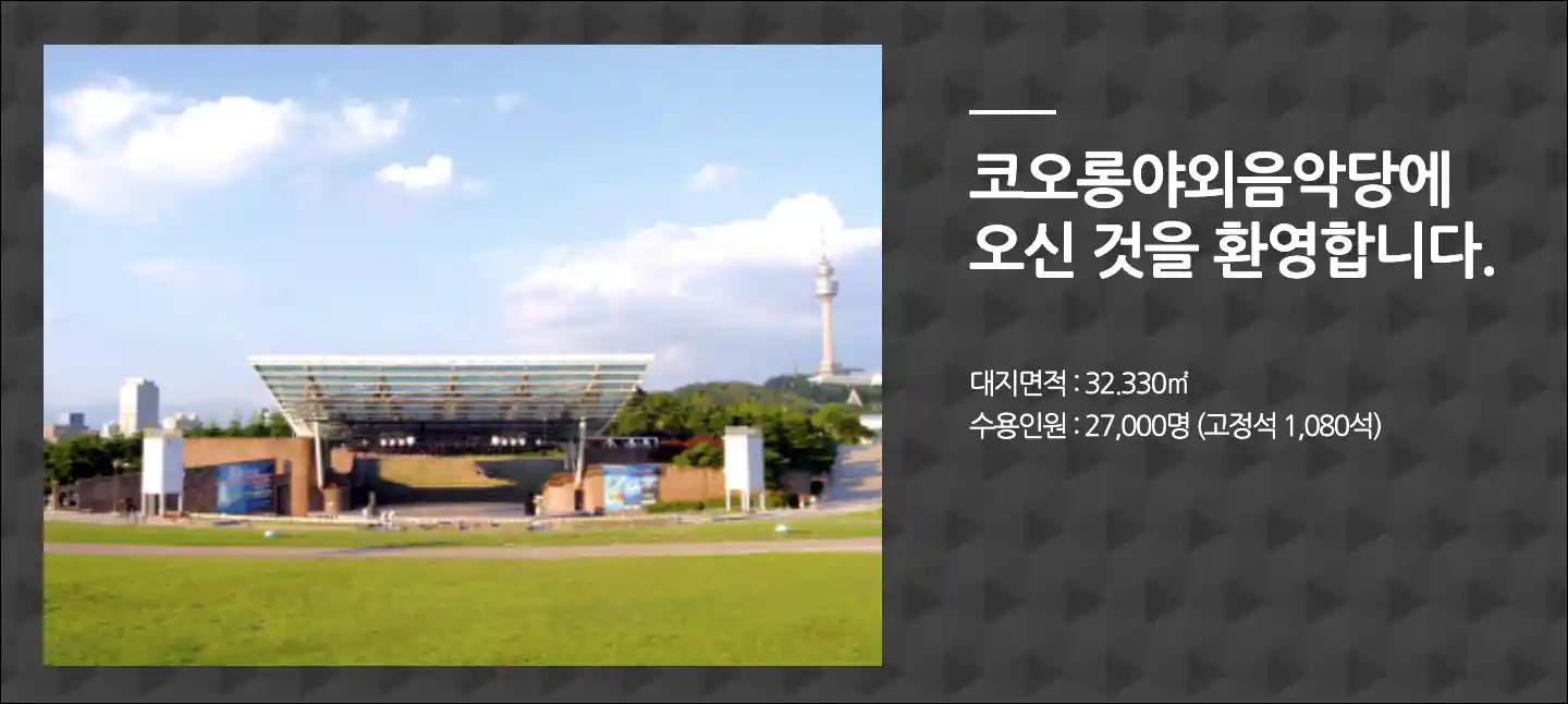 대구문화예술회관 야외음악당은 2000년 9월 29일 개관하여 국내 최대의 단일 야외공연장으로 자리 잡았습니다. 두류공원 내 위치하고 있어 지리적 장점을 가지고 있으며, 7천여 평의 잔디광장에는 2만 7천명의 관객을 수용할 수 있습니다. 이 공간에서는 음악회뿐만 아니라 연극, 뮤지컬, 오페라 등 다양한 장르의 무대공연이 가능합니다.