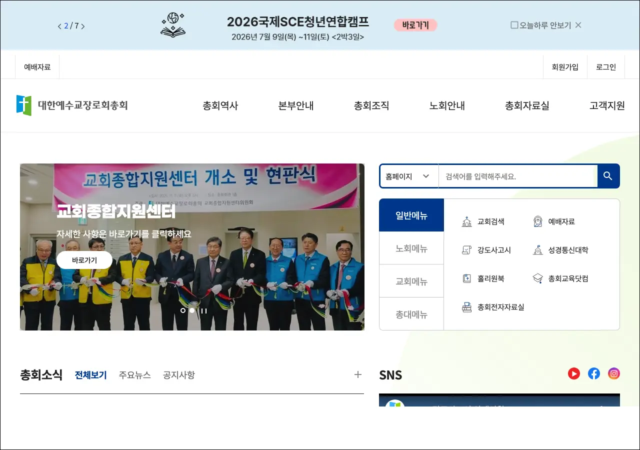 장로교는 한국 개신교에서 가장 큰 비중을 차지하는 교단 중 하나인데, 여러 분파가 있어서 이 사이트는 그중 합동 측 총회에 해당하는 곳입니다. 목회자나 교회 관계자분들이 교단 관련 행정 업무를 처리하거나 공문을 확인하는 용도로도 이용하고 계시지요.