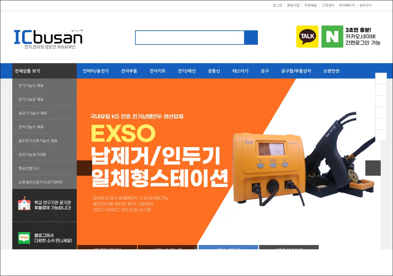 전자부품이나 전기재료 쪽을 다루시는 분들한테 참고가 될 수 있는 사이트인데요, 아이씨부산은 월드하이텍이라는 회사에서 운영하는 전자 및 전기재료 전문 쇼핑몰입니다. 각종 전자부품부터 차량용 인버터, 전기기능사 관련 자재까지 폭넓게 취급하고 있더라고요.