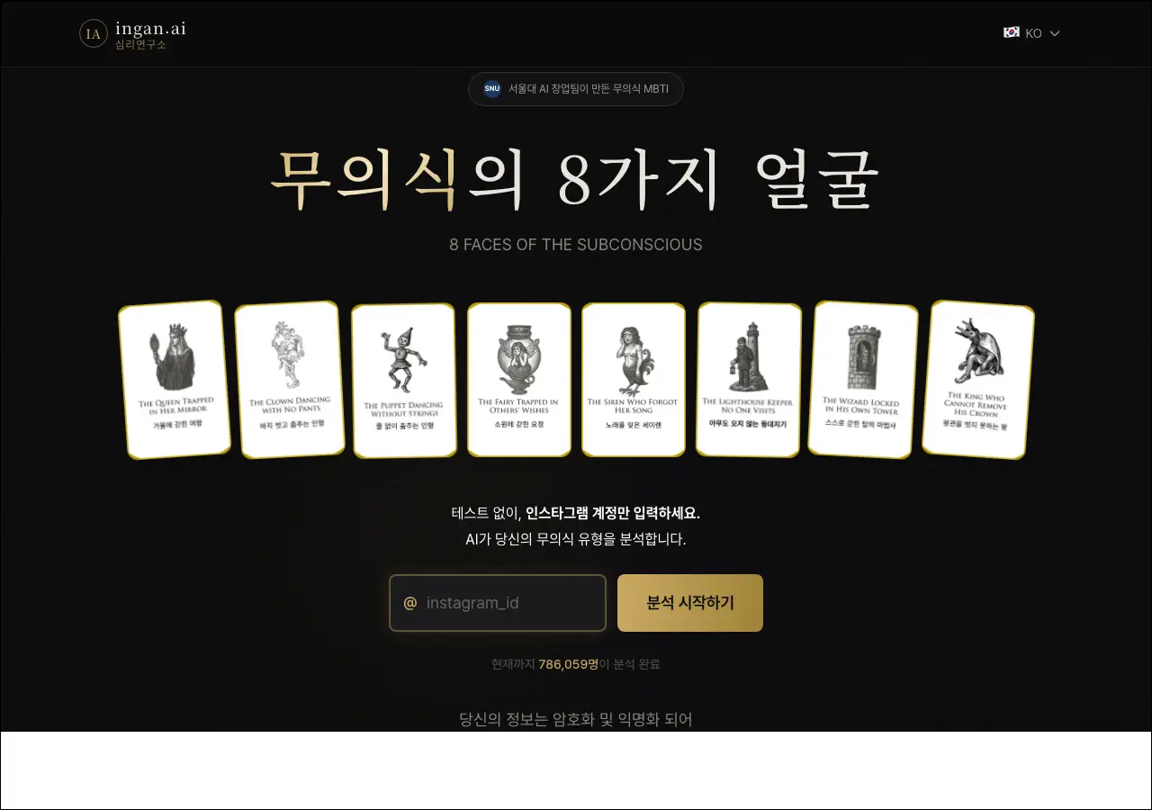 재미있는 서비스를 발견했는데요, ingan.ai는 인스타그램 계정을 분석해서 심리적 특성을 알려주는 AI 기반 서비스입니다. 자신의 인스타그램 활동 패턴이나 게시물을 토대로 어떤 성향인지 분석해주는 방식인 것 같더라고요.