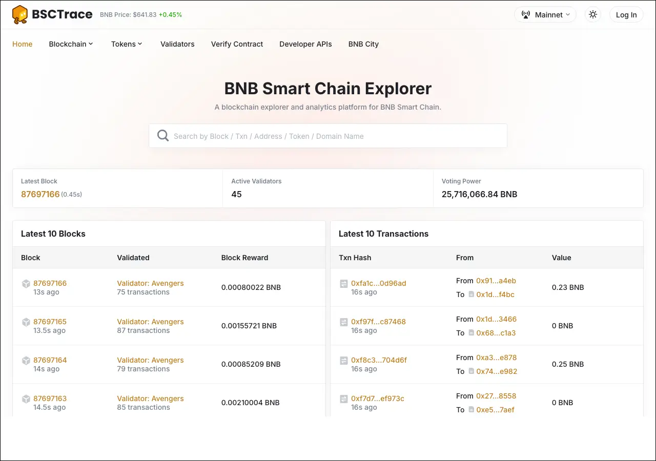 BSCTrace는 바이낸스 스마트 체인(BNB Smart Chain) 블록체인 전용 탐색기 및 분석 플랫폼이에요. BSC 네트워크에서 이루어지는 블록, 거래 내역, 지갑 주소 등을 조회하고 추적할 수 있는 서비스를 제공하고 있습니다. 블록체인 거래의 투명성을 확인하거나 특정 트랜잭션의 상태를 추적하고 싶을 때 유용하게 활용할 수 있는 사이트예요.