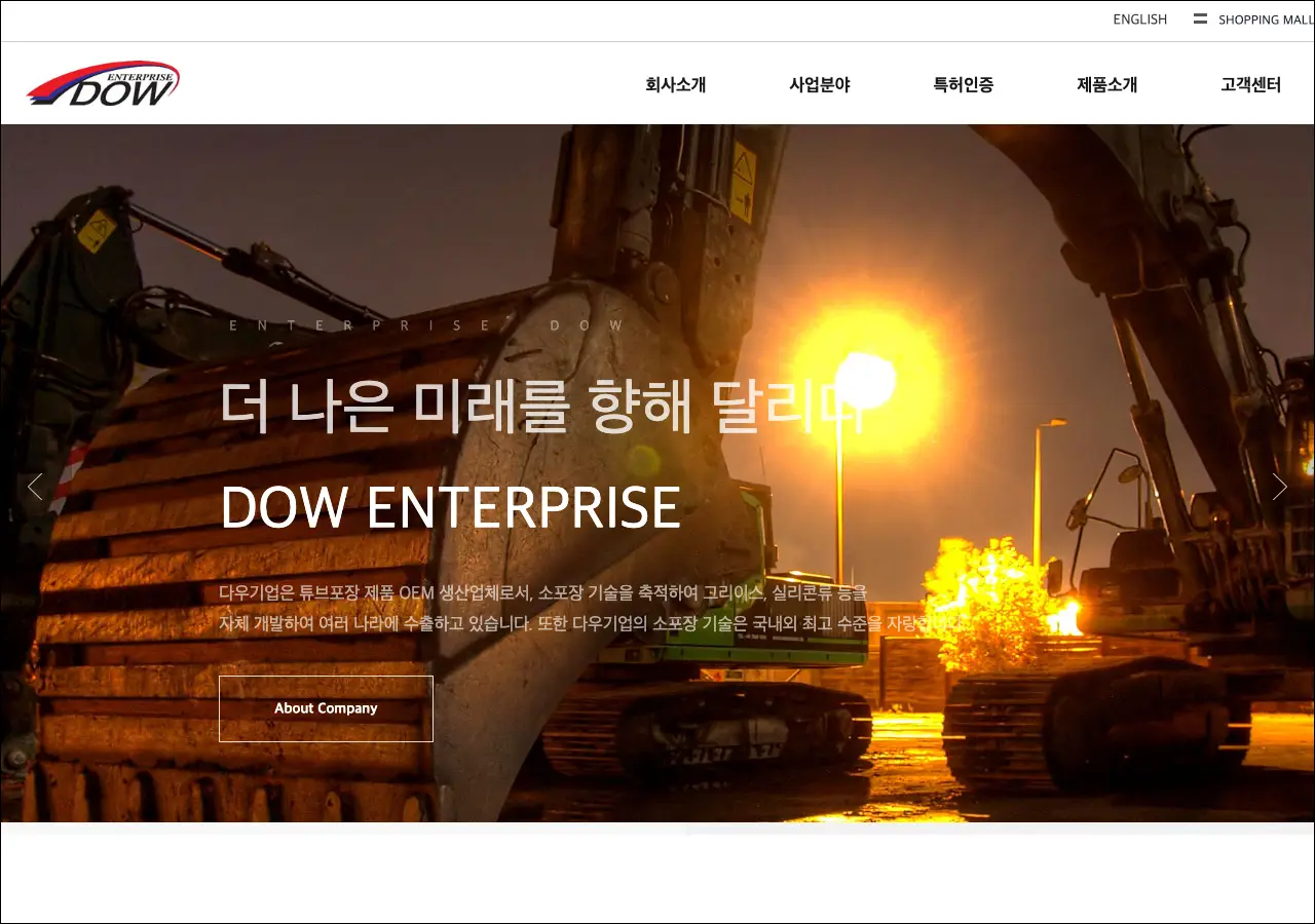 다우기업은 산업 관련 사업을 영위하는 기업의 공식 홈페이지예요. 사이트에서는 회사 소개, 사업 분야, 제품 정보 등을 확인할 수 있는데, 기업 간 거래를 위한 정보 제공에 초점을 맞추고 있는 것으로 보여요.