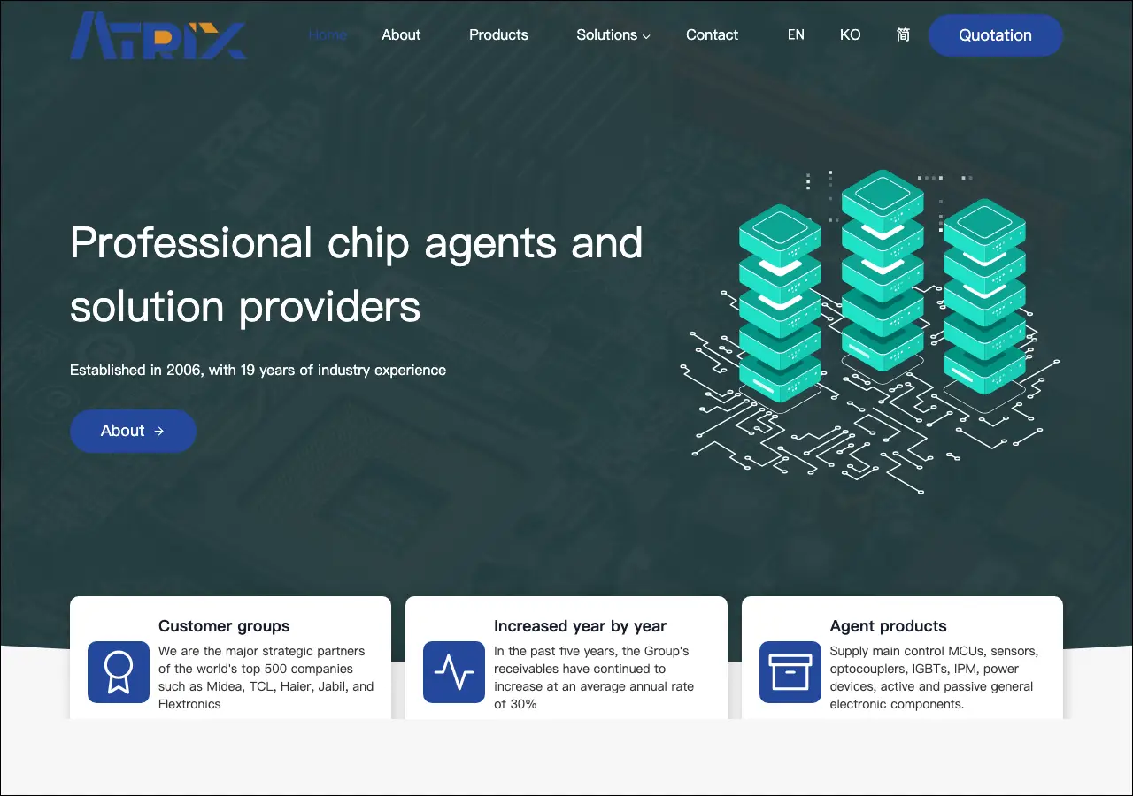 아트릭스 세미컨덕터는 반도체 및 전자부품 유통을 전문으로 하는 기업의 공식 사이트예요. 싱가포르에 기반을 둔 회사로 보이며, 다양한 반도체 제품과 전자 부품을 취급하고 있어요.