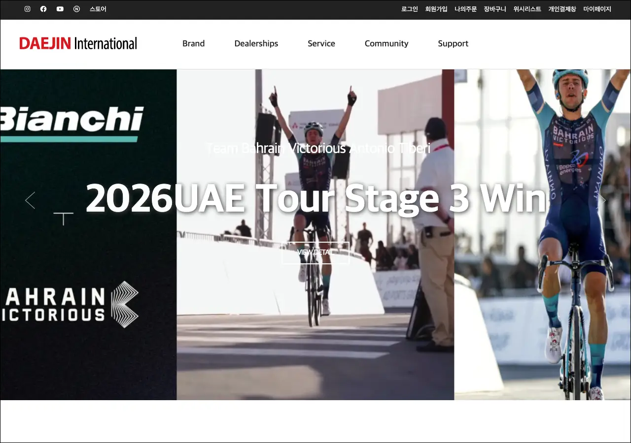 사이트에 접속하면 대진KR이라는 국내 수입총판 페이지로 연결되는데요. 로드바이크부터 MTB, 시티바이크까지 비앙키 제품 라인업을 확인할 수 있고, 전국 딜러 네트워크 정보도 제공하고 있어요. 비앙키 자전거에 관심 있으신 분이라면 한번 들어가서 모델별 스펙을 비교해보시는 것도 좋을 것 같습니다.
