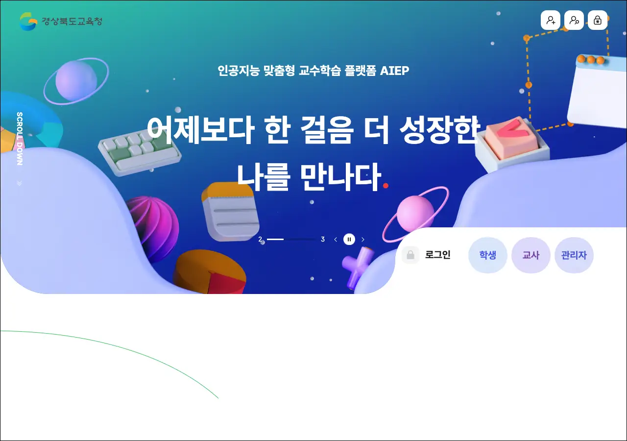 AI 맞춤형 교수학습은 경상북도교육청에서 운영하는 교육 플랫폼이에요. 인공지능 기술을 활용해서 학생 개개인의 학습 수준과 진도에 맞춘 교수학습 서비스를 제공하고 있습니다. 교사와 학생 모두가 활용할 수 있도록 설계되어 있고요, 특히 경북 지역 학교에서 수업에 직접 활용할 수 있는 다양한 학습 도구를 갖추고 있어요. AI가 학생의 학습 데이터를 분석해서 취약한 부분을 파악하고 그에 맞는 보충 자료를 추천해주는 방식이라 개별화 학습에 도움이 되는 서비스입니다.