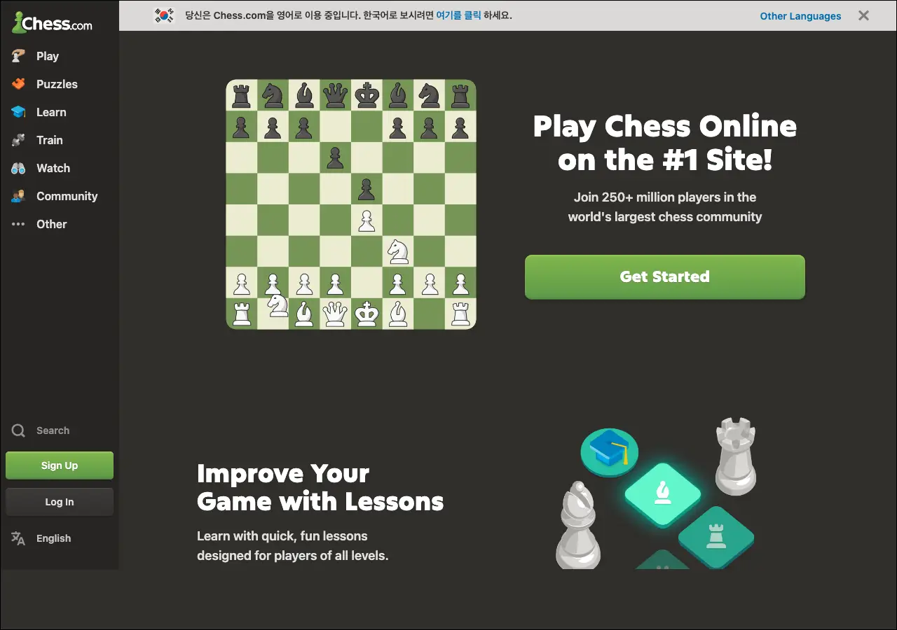 Chess.com은 세계 최대 규모의 온라인 체스 플랫폼이에요. 전 세계 수천만 명의 회원이 활동하고 있고, 초보자부터 그랜드마스터급 실력자까지 다양한 수준의 플레이어들이 실시간으로 대국을 즐기고 있습니다. 무료로 체스 대국을 할 수 있는 것은 물론이고, 체스 퍼즐이나 전술 훈련, 강의 영상 같은 학습 콘텐츠도 풍부하게 제공되고 있어요. 컴퓨터와 대전하는 모드도 있고, 친구를 초대해서 함께 플레이할 수도 있습니다. 체스에 관심 있는 분이라면 입문용으로도 좋고, 실력을 키우기에도 괜찮은 사이트입니다.