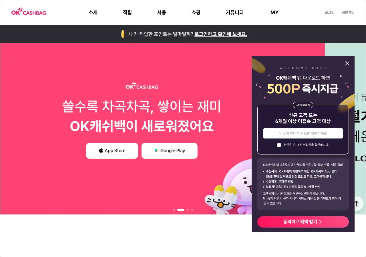 사이트에 접속하면 내 포인트 현황이랑 제휴 할인 쿠폰, 이벤트 정보를 한눈에 볼 수 있는데요. 요즘은 앱 위주로 쓰는 분들이 많아도 웹에서 포인트 소멸 예정일을 확인하거나 현금전환 신청할 때 여전히 유용하게 쓸 수 있어서 즐겨찾기 해두면 편리해요.